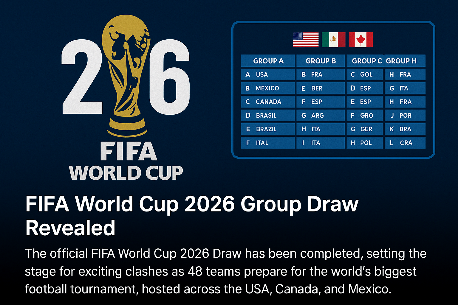 The official FIFA World Cup 2026 Draw has been completed, setting the stage for exciting clashes as 48 teams prepare for the world’s biggest football tournament, hosted across the USA, Canada, and Mexico.